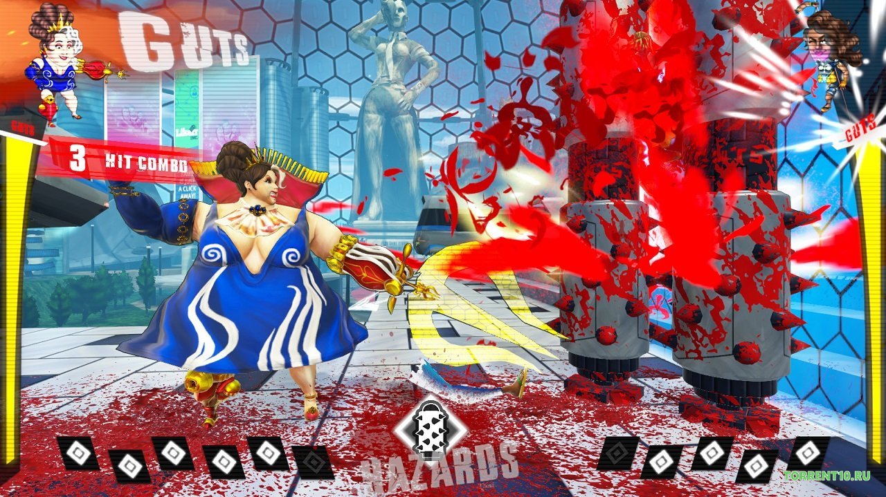 Мы видели немало файтингов за свою жизнь, и казалось бы, что Мортал Комбат держит звание самой жестокой серии. Но игра GUTS сумела превзойти даже её. Здесь такой уровень насилия и кровавых сцен, что играть в неё слабонервным просто противопоказано.