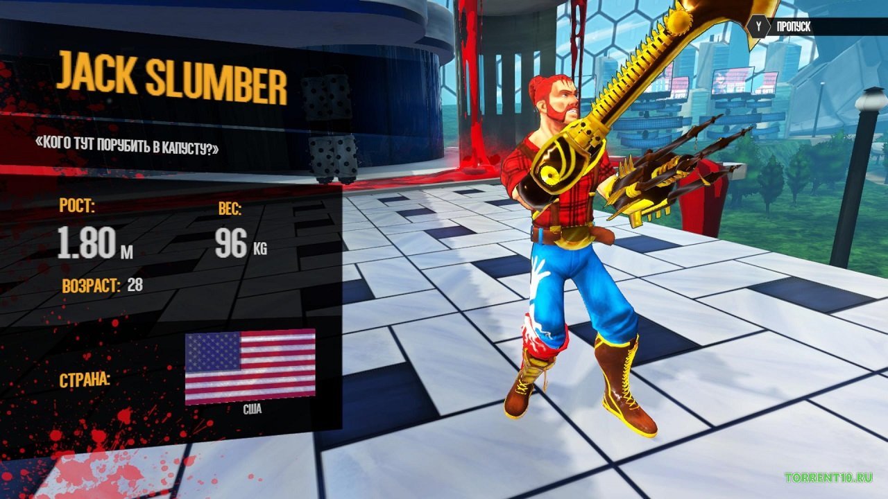 В игре девять уникальных персонажей, каждый с собственной историей и мотивацией для участия в шоу. Подбирайте бойцов так, чтобы столкновения были максимально зрелищными. Например, можно устроить бой между профессиональным фитнес-спортсменом и принцессой, мастером спортивного поедания — зрелище обеспечено!