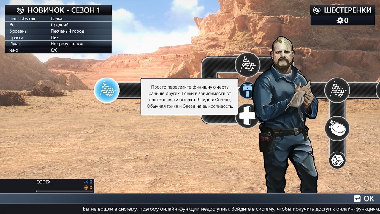Если вы любите скорость и острые ощущения, то Mantis Burn Racing точно для вас. Пустынные трассы и необычные гоночные автомобили создают уникальную атмосферу, где каждое соревнование превращается в настоящее испытание. На старте игры рекомендуется пройти обучающий режим — это поможет вам освоиться с управлением и подготовит к более сложным этапам гонок. Песчаные дюны и извилистые треки будут проверять ваше мастерство в управлении машиной, но карта и подсказки помогут ориентироваться и планировать путь на всей трассе.