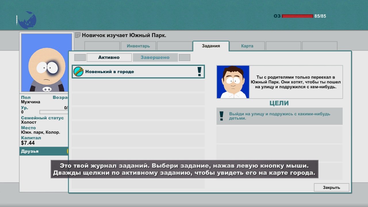 Вы начинаете на игровых площадках четвероклассников, где ваш герой должен заслужить звание настоящего героя. Трей Паркер и Мэтт Стоун подготовили масштабную миссию — стать самым крутым школьником. В роли новенького вам предстоит завести друзей в незнакомом городе. Дети Южного Парка вовлекаются в ролевую игру: они колдуют воображаемые заклинания и машут игрушечными мечами. Игра постепенно превращается в эпическую битву между добром и злом, где исход определяет судьбу всего города.