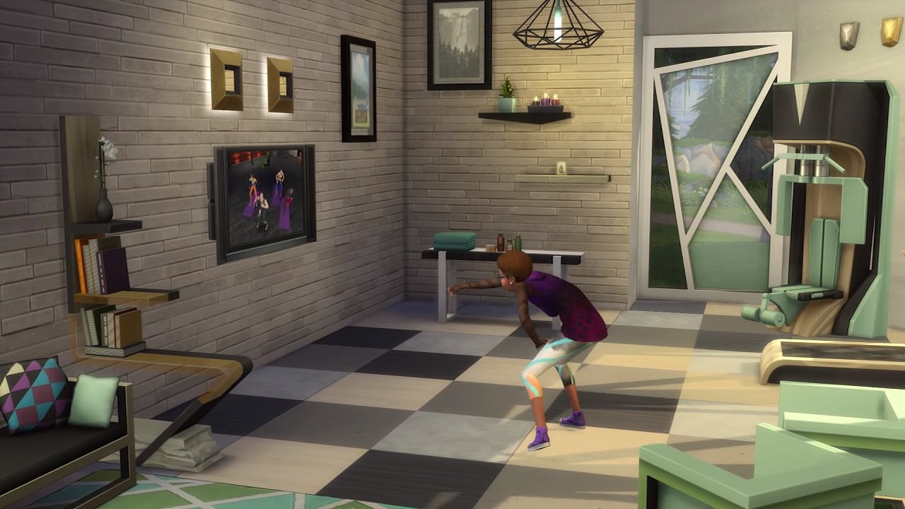 Если ваш сим боится высоты или неуклюжий, можно выбрать другие виды упражнений. Например, показывайте видеоролики с комплексами упражнений, чтобы персонаж тренировался в спортзале, либо создайте домашний уголок с тренажерами. Так ваш сим будет поддерживать форму, оставаясь в кругу семьи.