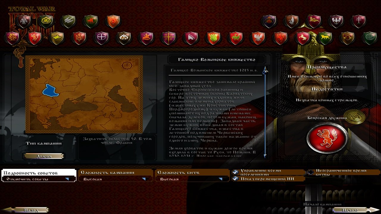 Каждая фракция в игре обладает собственными преимуществами и уязвимостями. Чтобы добиться успеха, необходимо понимать сильные и слабые стороны противников. Например, шведские армии славятся сильной пехотой, но практически не имеют кавалерии — и это можно использовать в свою пользу. В Русь 2 Total War, которую можно скачать торрент бесплатно, вас ждёт масштабная карта с более чем тридцатью фракциями, каждая из которых имеет уникальные особенности, стратегию ведения боя и собственные цели.