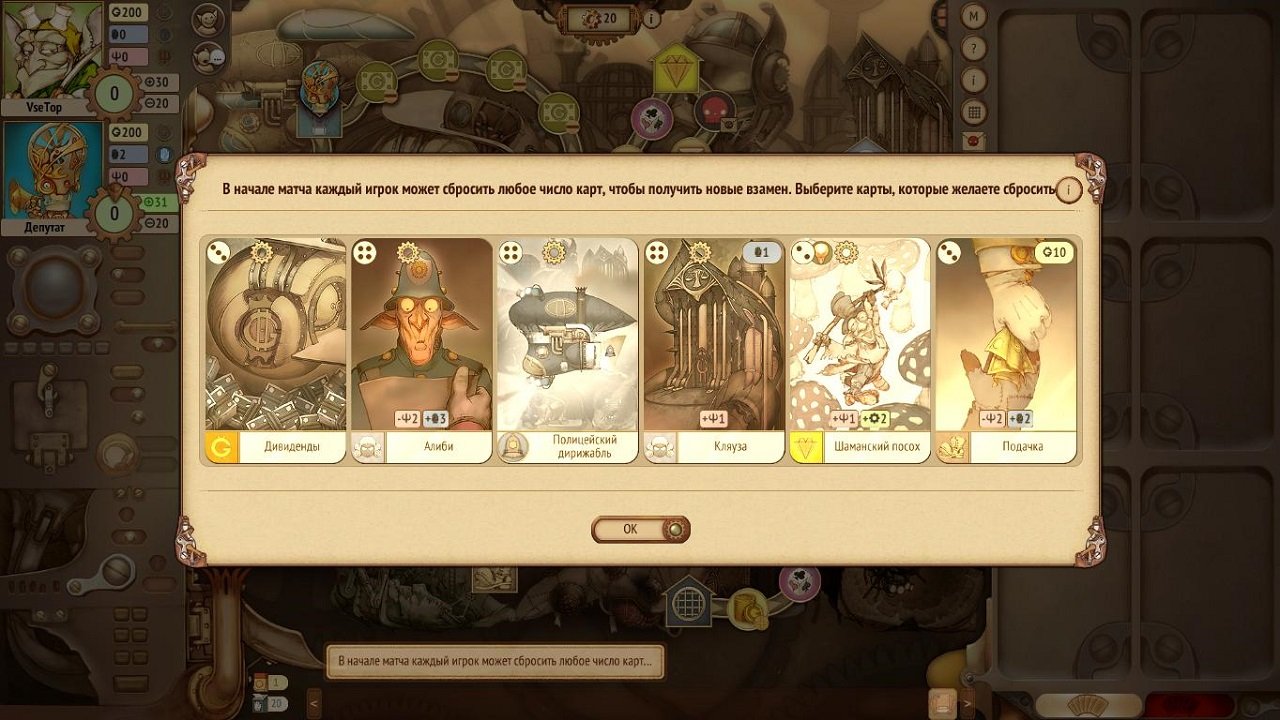 Gremlins vs Automatons — это карточная RPG-стратегия в уникальном стимпанк-стиле. Действие игры разворачивается в городе, где правят хитрые гремлины, стремящиеся к богатству и влиянию. В начале раунда вам раздаются шесть карт из общей колоды, которые можно использовать для перемещений по игровому полю или выполнения специальных действий. Ваша главная цель — заработать как можно больше очков престижа и стать самым влиятельным игроком.
