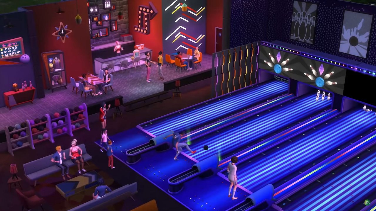 Особое внимание уделено атмосфере. В вашем боулинг-клубе можно включить игру при лунном свете, добавить неоновое освещение и стильную ретро-мебель: столы, стулья и украшения, создающие атмосферу настоящего боулинг-клуба прошлого века. Ваши симы будут получать удовольствие от времени, проведённого за игрой, а показатели досуга повышаются с каждой сессией.