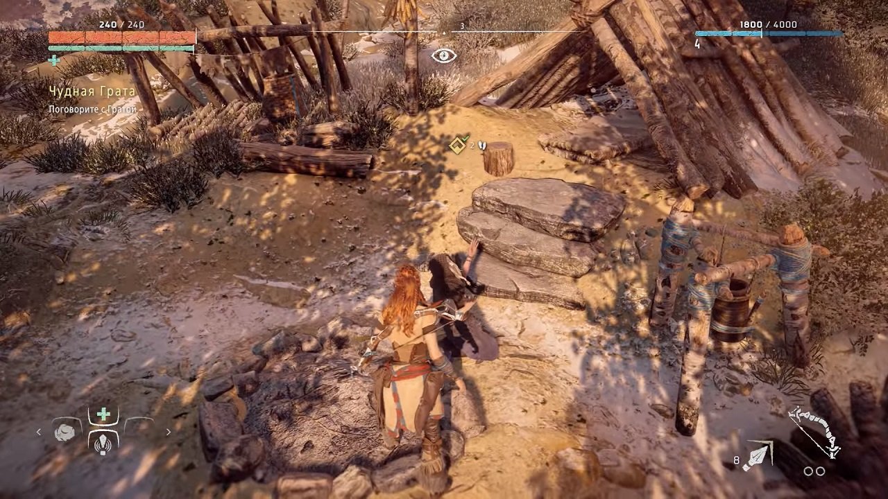- Сильная и харизматичная героиня. Элой — превосходный охотник. Она охотится на машины не ради пропитания, а ради получения ценных деталей, которые помогут ей выжить. В её распоряжении широкий набор гаджетов, уникальные стрелы и мощное оружие дальнего боя.