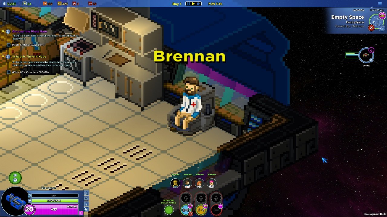 В начале игры вам нужно построить и модернизировать свой корабль, подобрать экипаж и тщательно продумать его оснащение. После подготовки можно отправляться в космическое путешествие, исследовать новые планеты и участвовать в боях с вражескими кораблями. На некоторых планетах придется сражаться с агрессивными галактическими цивилизациями, и успех миссии зависит от того, насколько хорошо вы управляете своим экипажем.