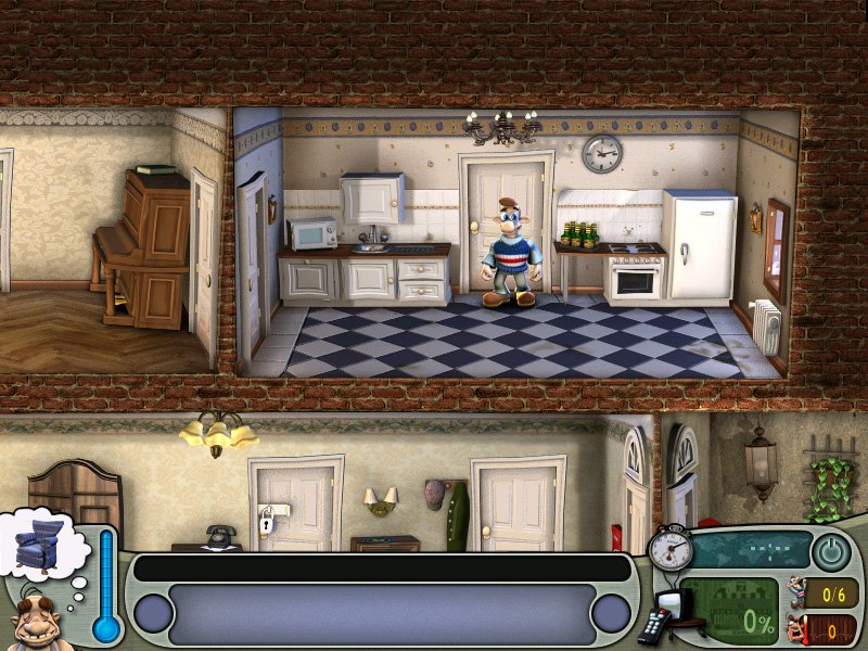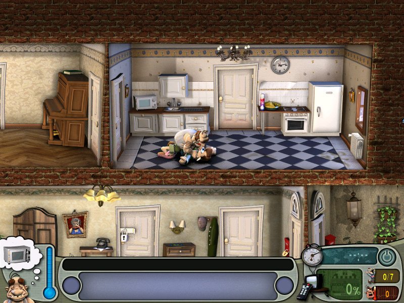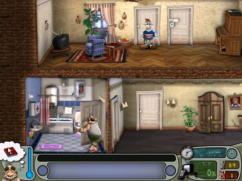 Дом вашего оппонента включает несколько этажей, и каждый из них таит немало возможностей. Рассыпьте шарики, если найдёте их в комоде — пусть сосед эффектно съедет по полу. Отыскав фломастеры, вы сможете «обновить» висящий на стене портрет его матери. Обязательно следите за облаком мыслей над головой героя — оно подсказывает, куда движется сосед и какие шаги он готовит. Оказавшись в ванной, вы найдёте массу необычных принадлежностей. А раз сосед обожает подглядывать в бинокль, почему бы не смазать его окуляры клеем? За каждую удачно провернутую проделку вы получите дополнительные бонусы. Передвигайтесь по этажам, отвлекайте соседа, выводите его из себя — именно на этом держится весь игровой процесс.