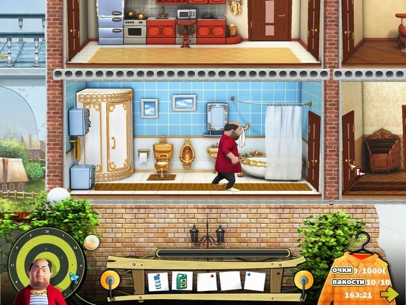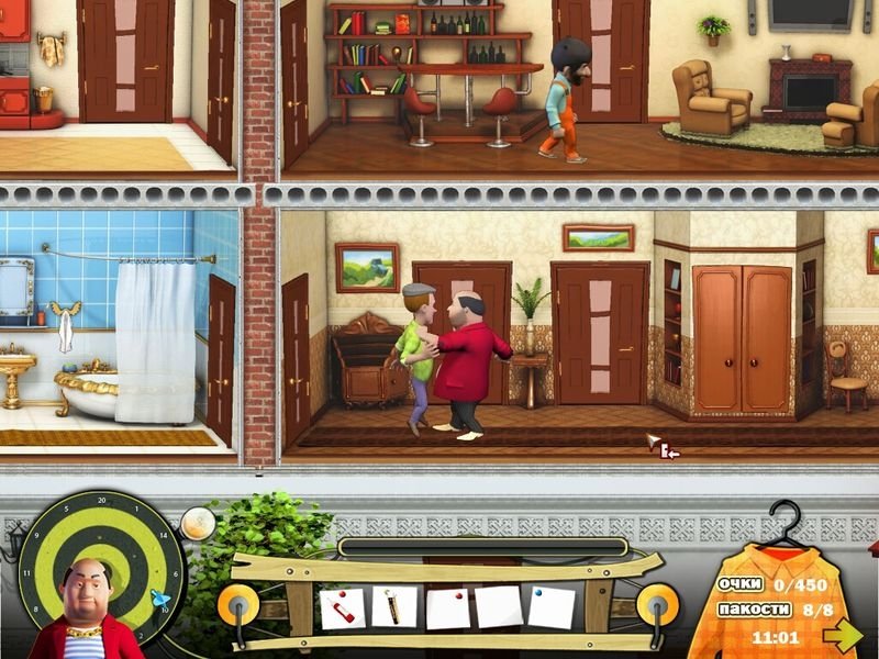 Игровой процесс: прежде чем устроить очередную пакость, внимательно изучайте подсказки и окружающую обстановку, ведь ваш оппонент тоже не прост. Перемещаясь по просторному дому, вы найдете множество полезных предметов, которые можно использовать для новых ловушек. В Как достать соседа Каникулы олигарха скачать торрент вам предстоит создать как можно больше хитроумных капканов и уловок, чтобы довести врага до предела. Не забывайте использовать телефон для отвлечения внимания, действуйте решительно и аккуратно.