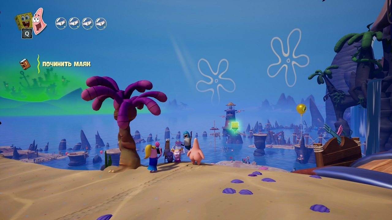 Губка Боб сражается комбинацией пузырьковых атак и приёмов со шпагой, Патрик использует необузданную силу, Сэнди полагается на свои изобретения и техасскую ловкость, а Сквидвард неожиданно эффективно применяет кларинет, создавая оглушающие звуковые волны. Благодаря этому команда получается необычной, но очень эффективной. Особое внимание в игре уделено кооперативу: до четырёх игроков могут проходить уровни вместе, сочетая способности персонажей и обмениваясь ролями в битвах с Титанами. В таких условиях даже привычные платформенные элементы и головоломки ощущаются свежо и увлекательно.