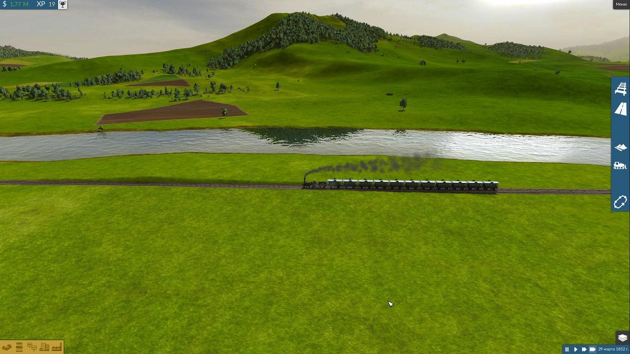 История начинается в 1850 году, когда в вашем распоряжении оказываются паровозы той эпохи. Основная задача — перевозка строительных материалов, оборудования и поселенцев, необходимых для освоения новых территорий. При разумном подходе к финансам прибыль будет постепенно увеличиваться, открывая доступ к обновлению подвижного состава и расширению штата.
