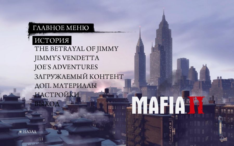 - Mafia II DLC: Betrayal of Jimmy: Джимми, бывший наёмный убийца, сам оказывается за решеткой после конфликта с китайской бандой. Вам предстоит пройти его историю, узнать причины мести и испытать новые автомобили и костюмы.