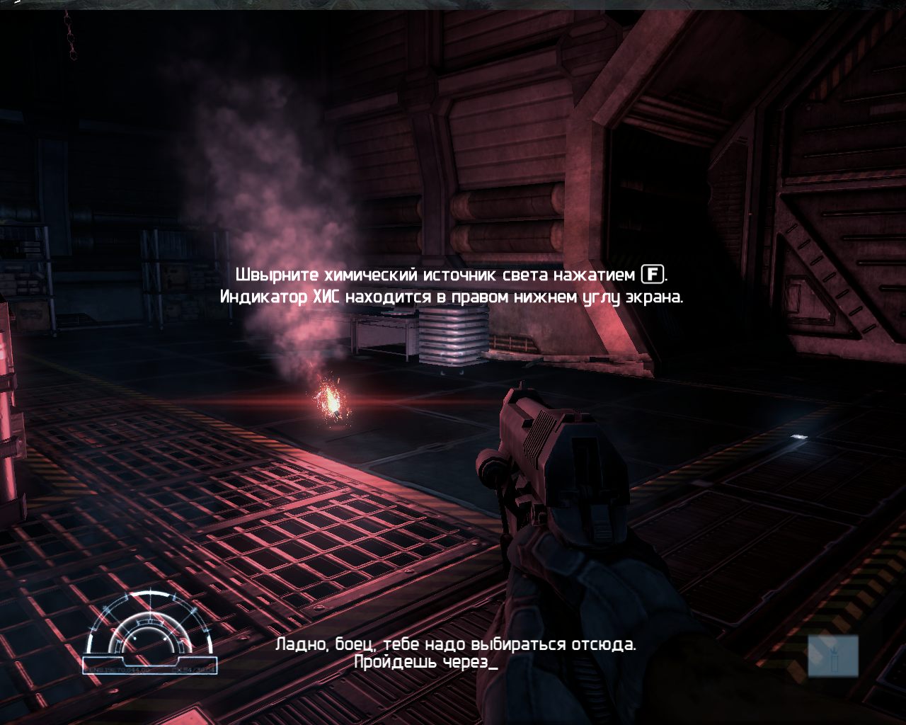 - Морпех использует огнестрельное оружие, тактические устройства для обнаружения врагов и освещения темных участков.