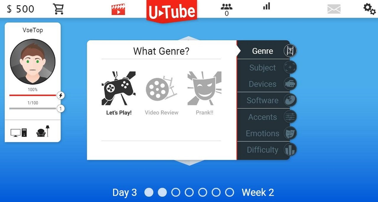 По ходу прохождения игрок самостоятельно расставляет приоритеты: сделать акцент на рекламе и заработке или стремиться к максимальной активности аудитории и обратной связи. Каждый выбор влияет на дальнейшее развитие канала.