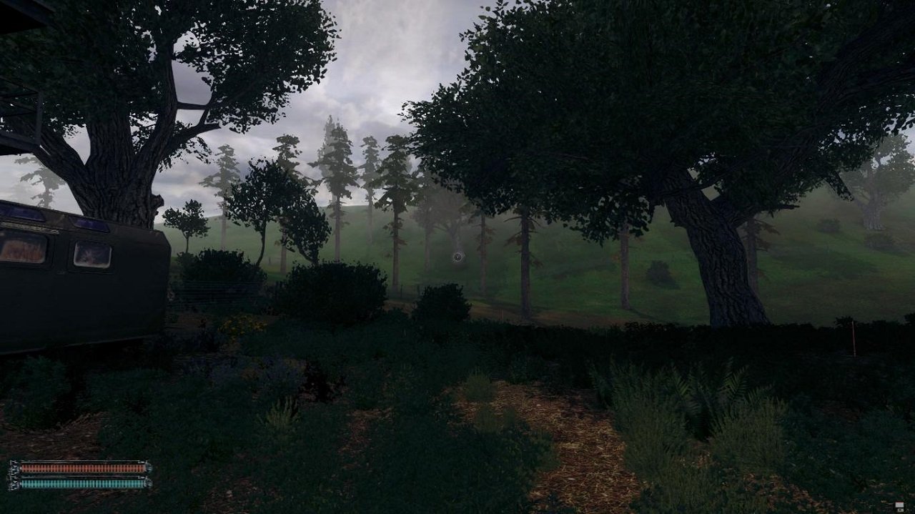 - Одна крупная локация: после выброса главный герой оказывается на Кордоне. Локация большая, с множеством уникальных мест, исследовать которые можно бесконечно.