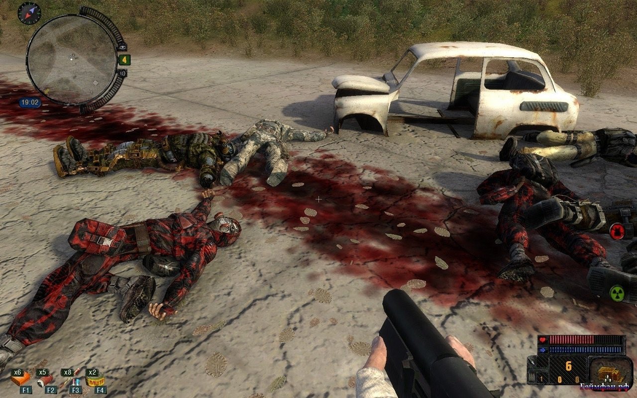 - Радиационный уровень: без противогаза подходить к врагам нельзя — иначе герой погибнет от облучения.