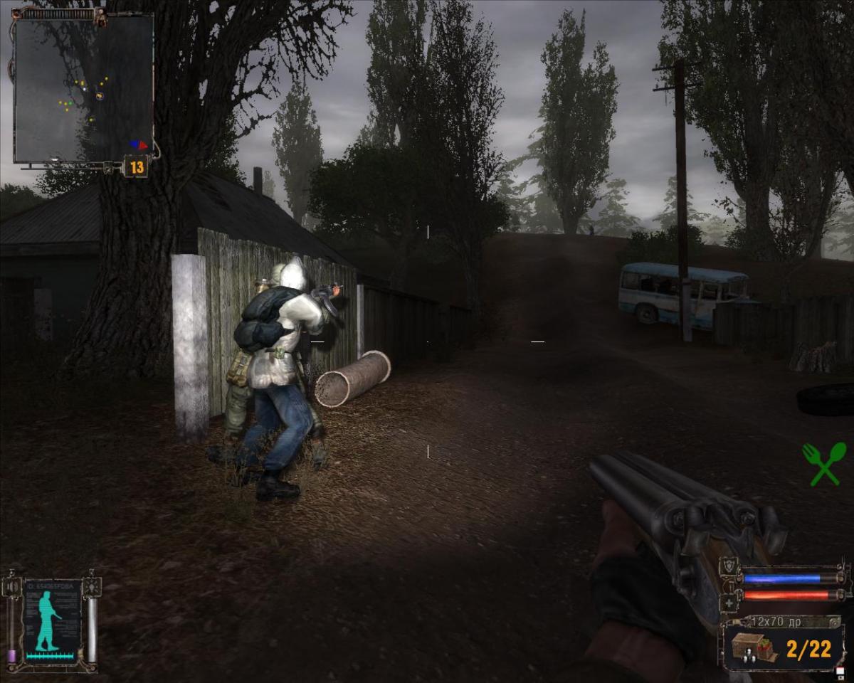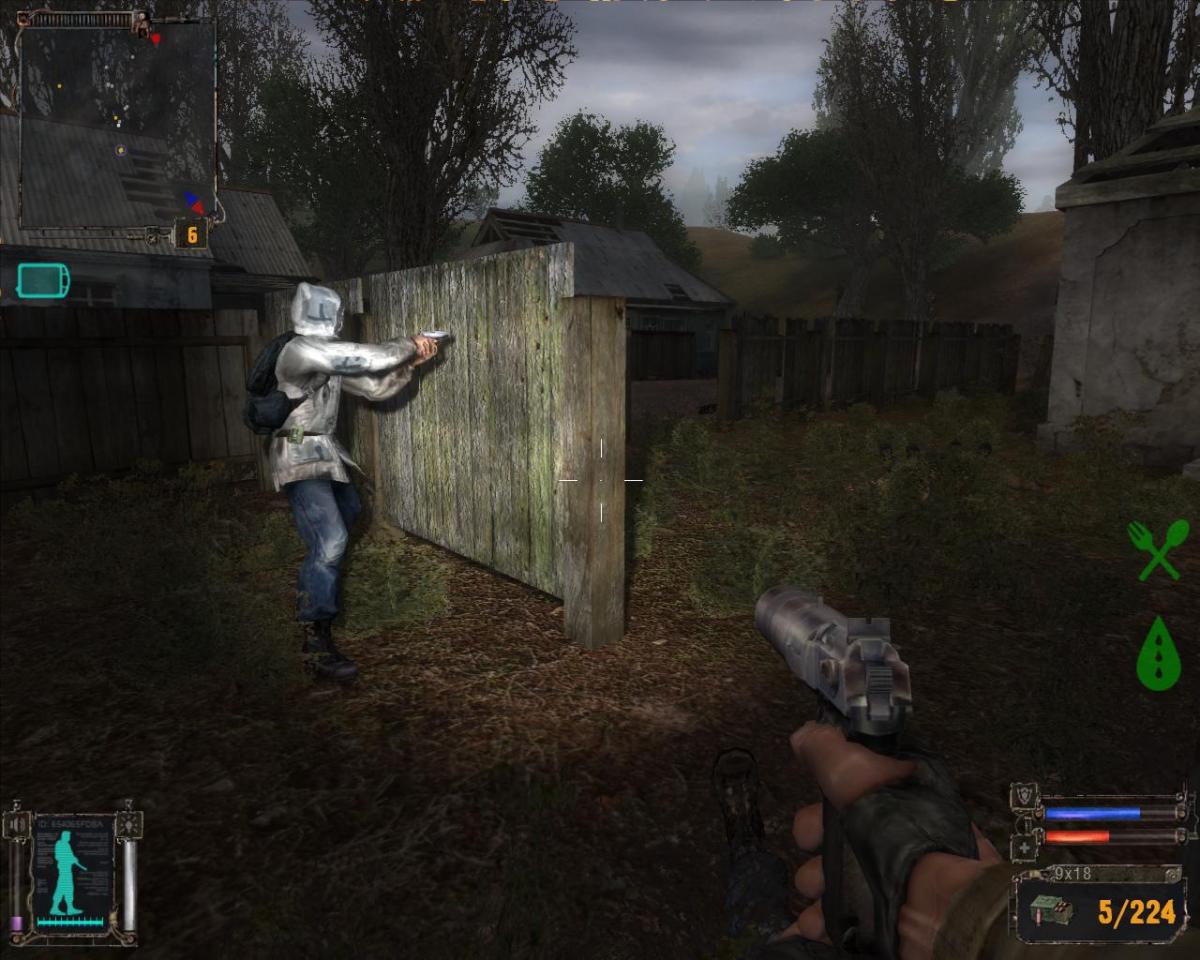 - Симуляция жизни: игра больше не просто шутер — это полноценный симулятор. Герою нужно есть, спать, лечиться и восстанавливаться после ранений, что добавляет реалистичности происходящему.