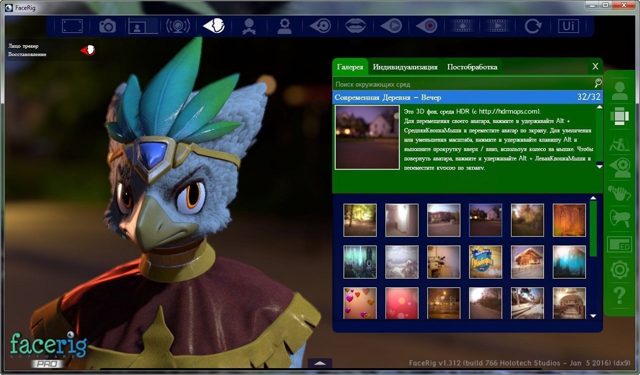 FaceRig позволяет не только копировать эмоции, но и телодвижения персонажей. Вы сможете создавать собственных героев, придавать им уникальные эмоции и манеру поведения, а также взаимодействовать с ними в игровом пространстве. С помощью веб-камеры программа фиксирует ваши движения и передает их на экран, оживляя любого выбранного персонажа — будь то животное, монстр или фантастическое существо. Приложение также поддерживает настройку голоса, что позволяет персонажам говорить вашим тоном.
