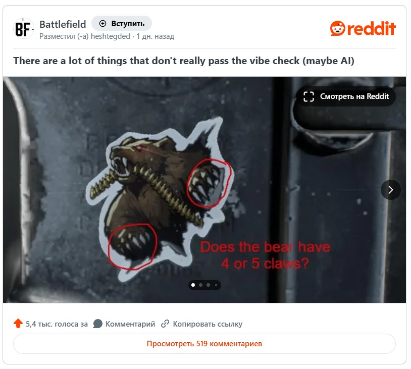 Вокруг Battlefield 6 разгорелся новый спор. В соцсетях игроки обратили внимание на странные детали в оформлении игры и предположили, что при создании некоторых изображений использовался генеративный ИИ — несмотря на прежние заявления разработчиков об обратном.