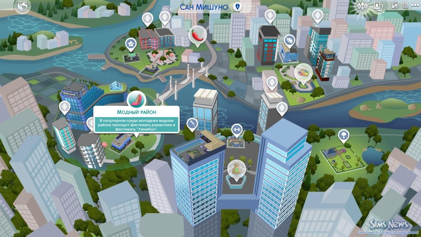 Каждый район города предлагает собственный стиль жизни. В одном из кварталов можно найти недорогое жильё и дружелюбных соседей, что отлично подойдёт для начала пути. Другой район станет настоящим раем для творческих симов — здесь регулярно проходят выставки, арт-фестивали и культурные мероприятия. Третий квартал создан для отдыха и развлечений: бары, рестораны и караоке-клубы работают почти без перерывов. А самый престижный район города — место обитания богатых и влиятельных симов, где роскошь ощущается в каждой детали.