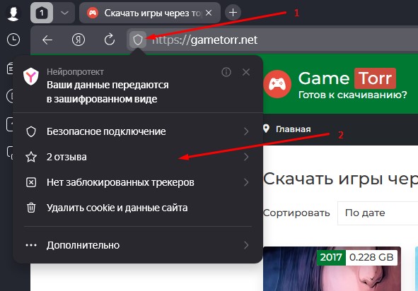 щиток в левом верхнем углу рядом с адресом сайта и оставьте отзыв о GameTorr.net. [скриншот]